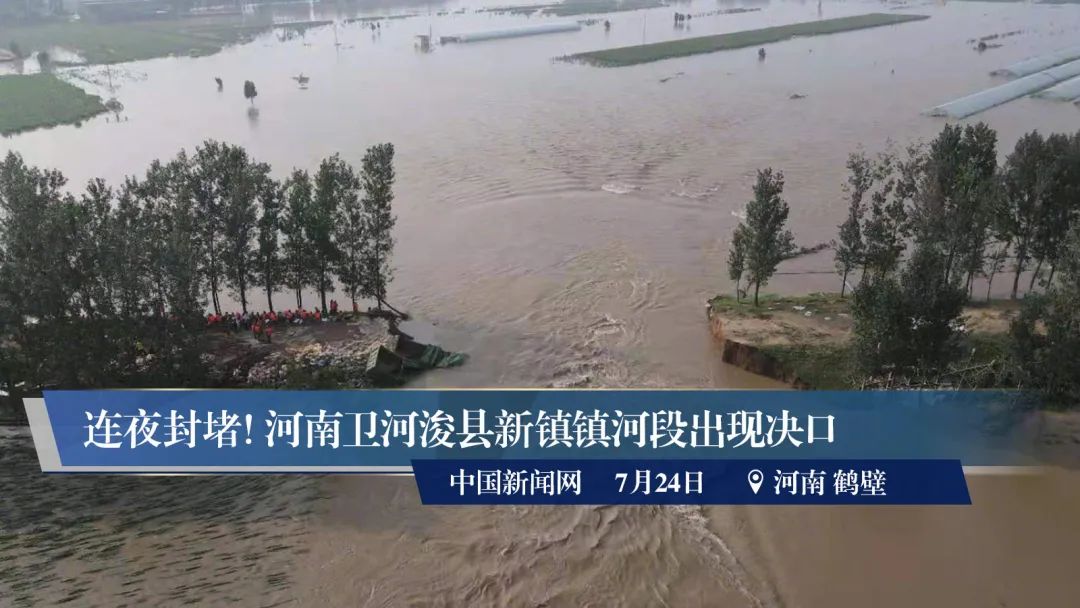 7月23日,受災嚴重的河南省鶴壁市??h衛河出現決口,通往外界的道路全部損毀,電力、通訊中斷,與外界失去聯系,村民正常生活受到嚴重影響。