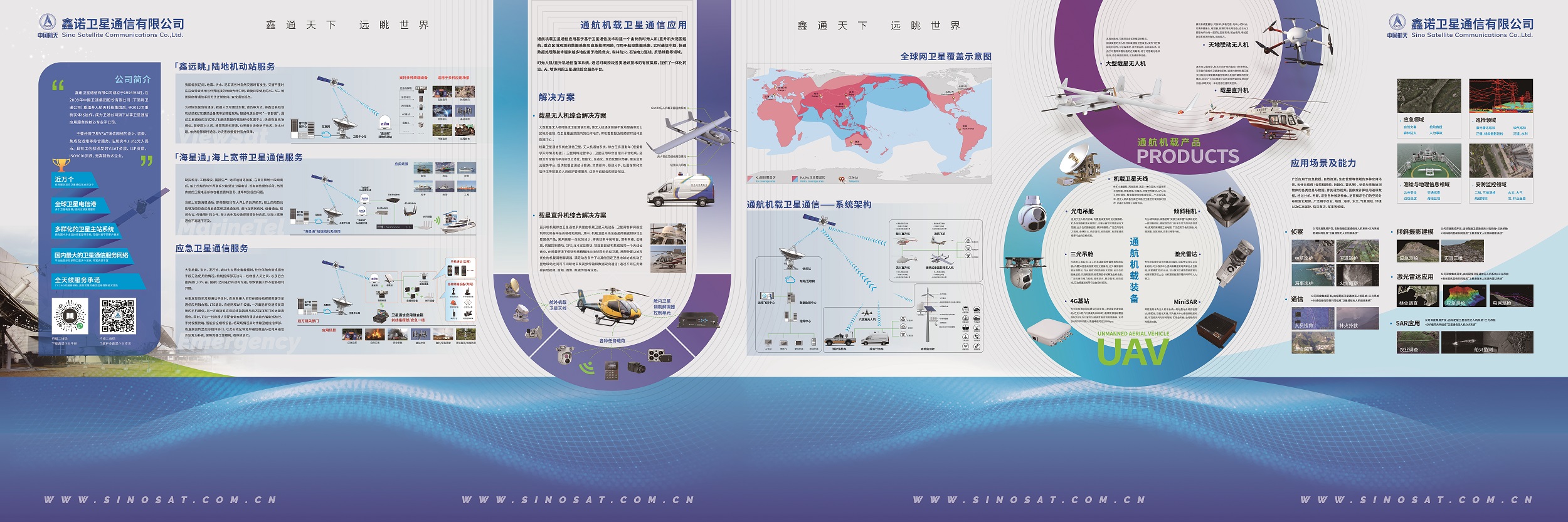 鑫諾公司帶來的大型載星無人機產品可集成衛星通信天線,使無人機通信鏈路不受地球曲率及山區地形遮擋,在衛星覆蓋范圍內的任何地方,將機載數據及視頻實時回傳至數據中心 。