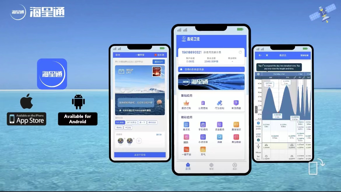 “海星通”APP致力于通過衛星通信技術為用戶提供更好的船岸信息互聯服務,從行業服務、生活服務、信息服務等多個方向,打造立體的海洋通信綜合服務體系,賦能海洋行業和海洋用戶。APP最新版本推出“鑫資訊”、“一鍵平安”、“展品櫥窗”、“天氣查詢”等新功能,并優化了包括下載注冊、賬號查詢等多處功能和交互,持續提升用戶體驗,提供更優質的服務。